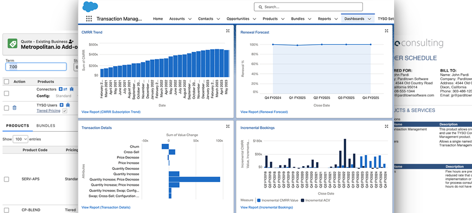 TYSO Transaction Management is a native force.com application built for SaaS and subscription businesses that allows you to easily quote, automate and measure your business.